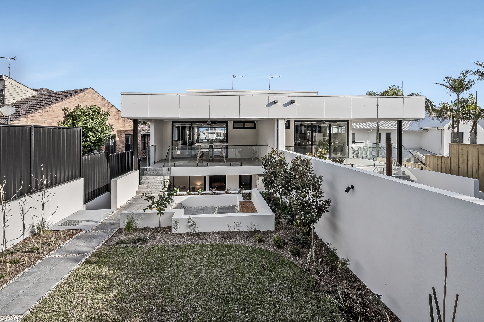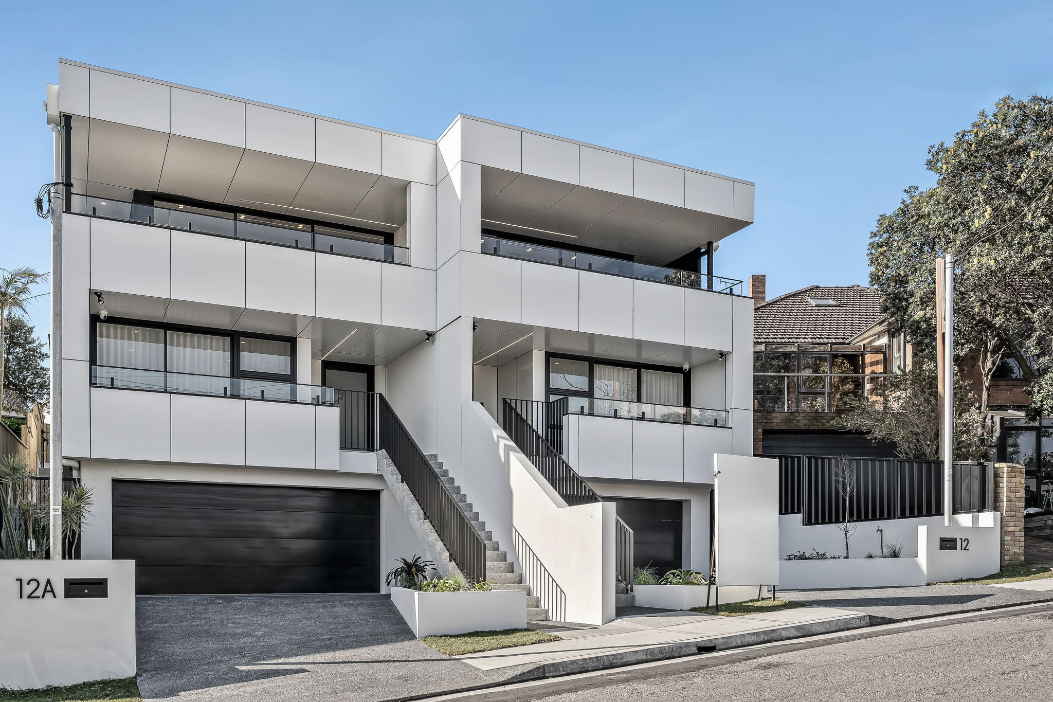 Webber designed two contemporary attached dwellings to replace an existing brick home on a sloping coastal site in Bar Beach. The project responds sensitively to the area’s evolving urban character, introducing a modern architectural form that complements the surrounding two-storey streetscape.