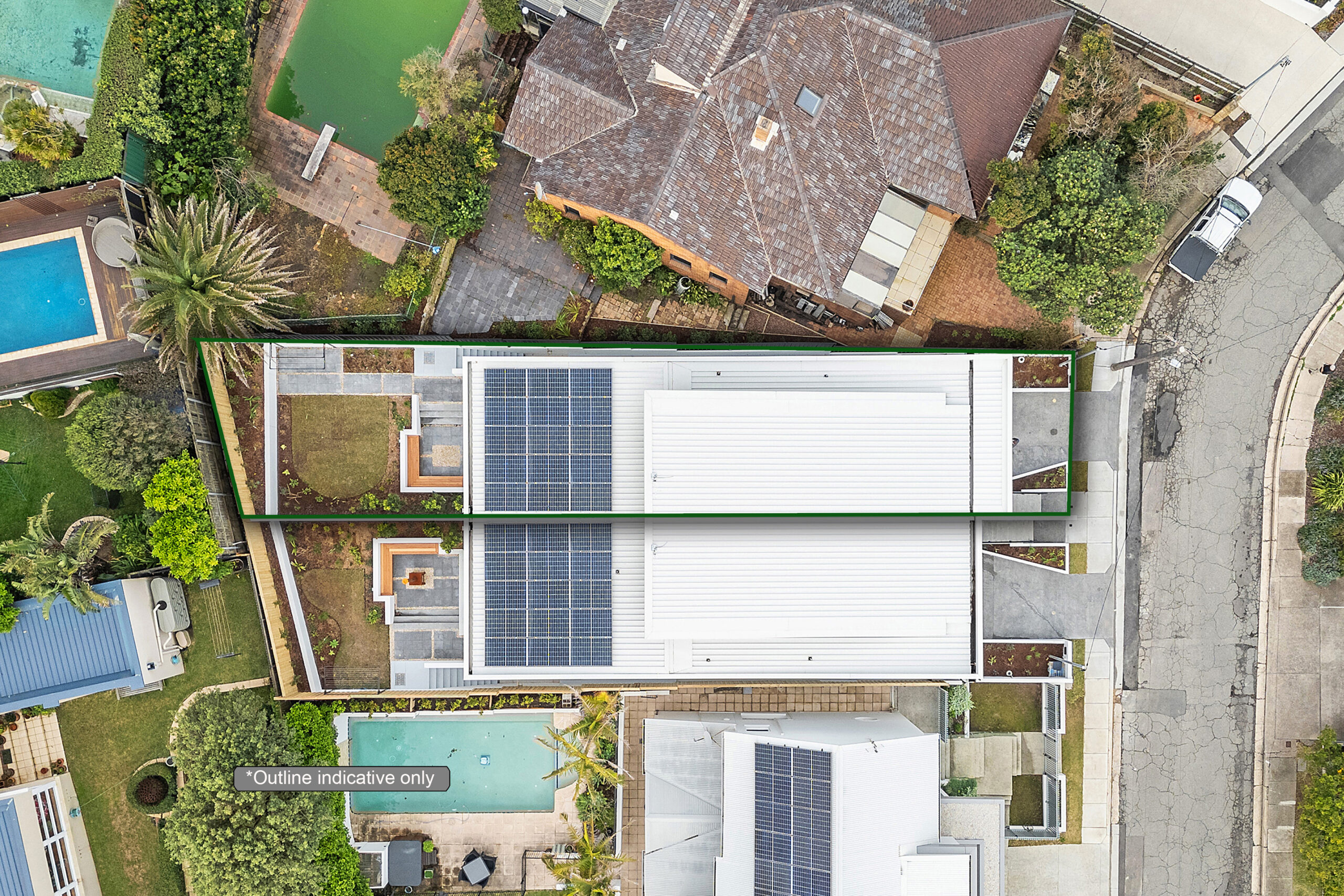 Sustainability and amenity underpin the design, with efficient cross ventilation, insulated upper levels, and battery and PV solar energy systems. Rainwater harvesting and reuse systems reduce water demand, while thoughtful landscaping by Moir Landscape Architects softens the built form and integrates the dwellings into their setting. The result is a sophisticated, site-responsive dual occupancy that enhances the character of Bar Beach through considered scale, proportion, and materiality.