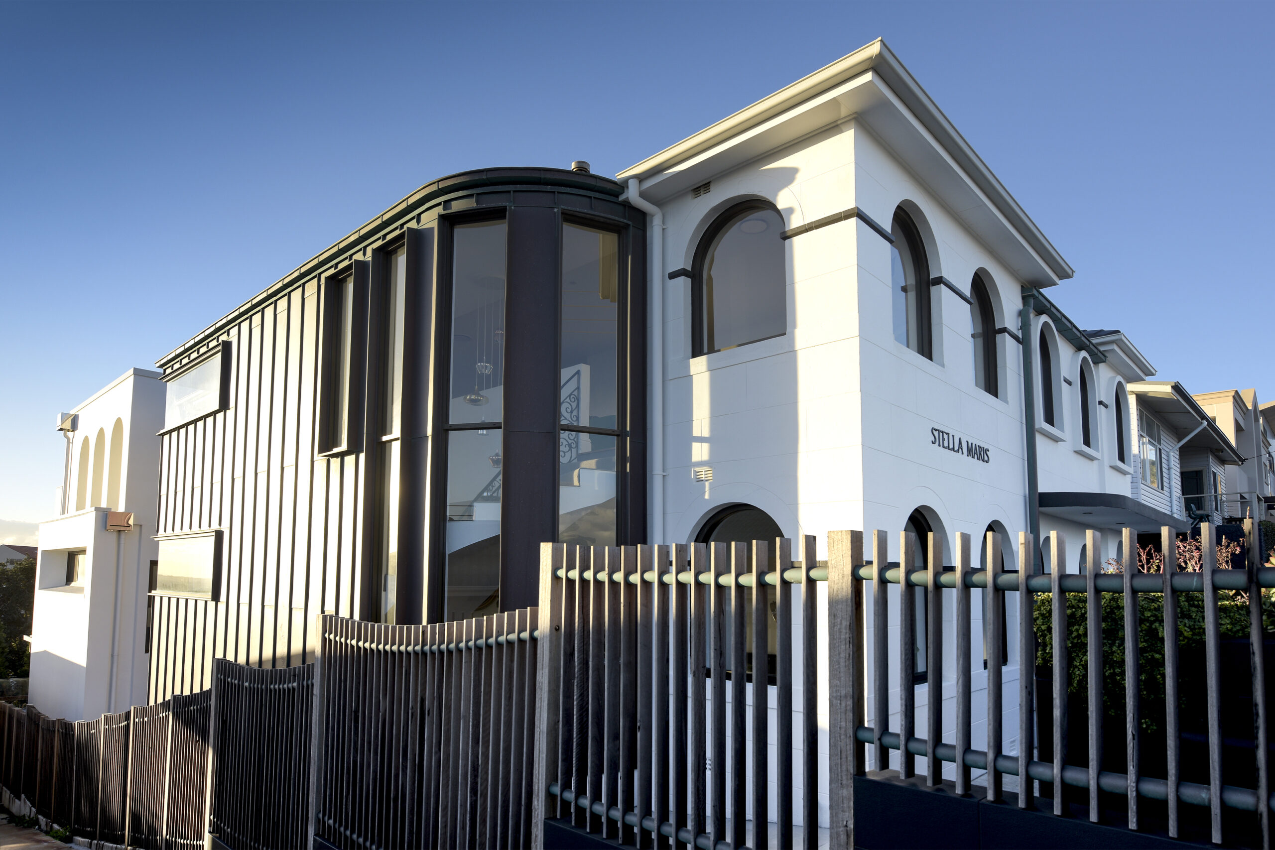 The design maximises ocean and city views while providing protection from harsh coastal conditions. Framed openings capture key outlooks and sea breezes, balancing privacy, light, and connection to the surrounding landscape.