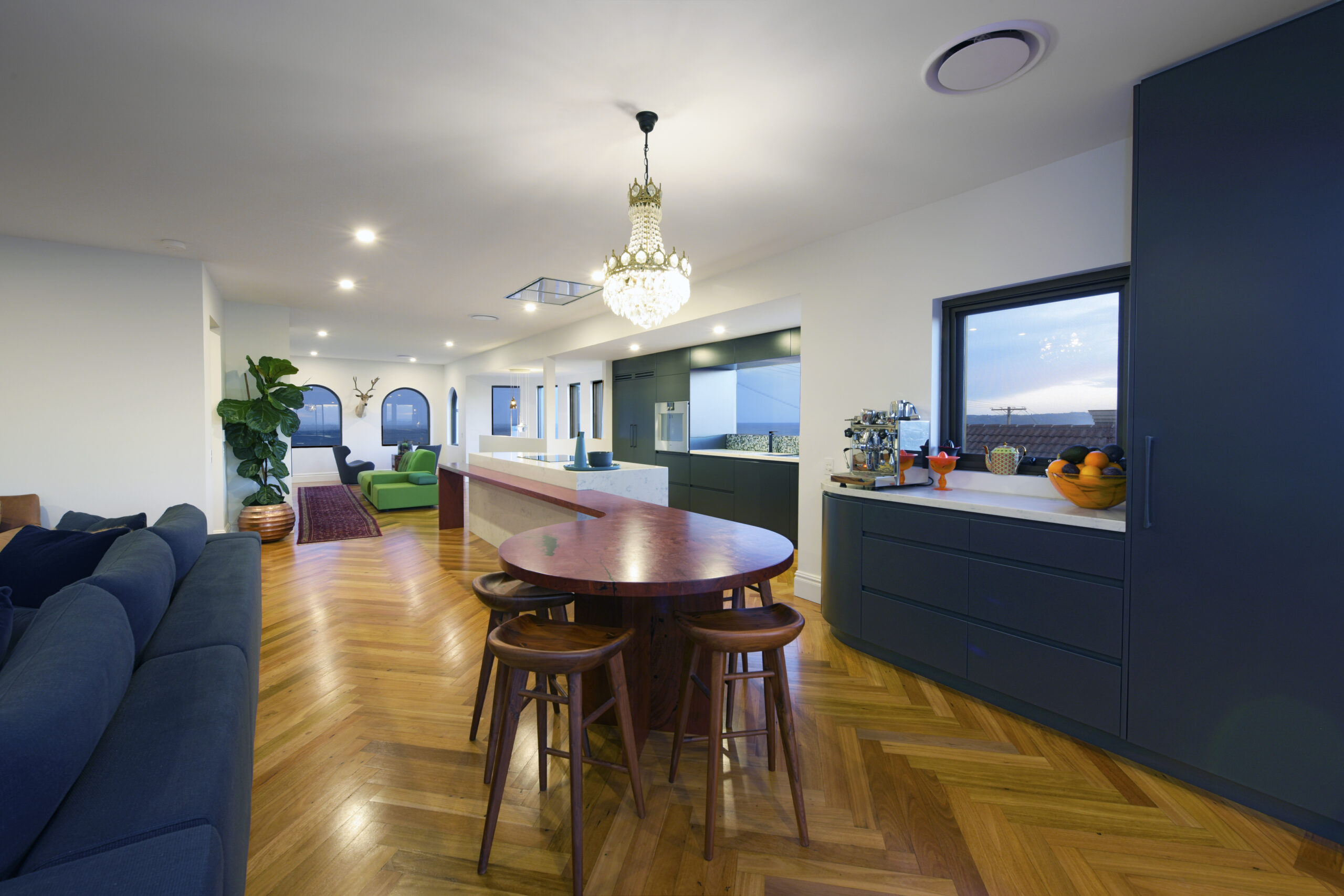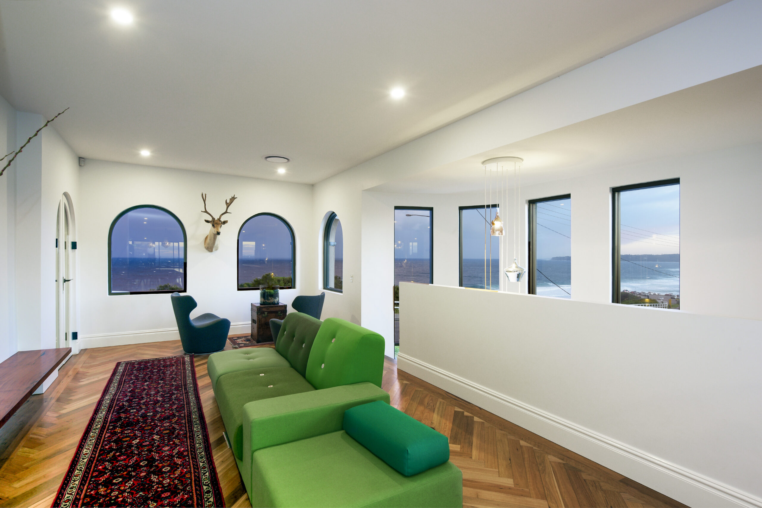This project involved the renovation and extension of a coastal home overlooking Bar Beach, NSW. The sloping 612m² site originally contained a three-storey dwelling with an attached rear outbuilding, which was removed to allow for a new pavilion-style addition.