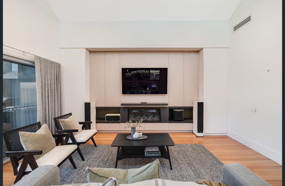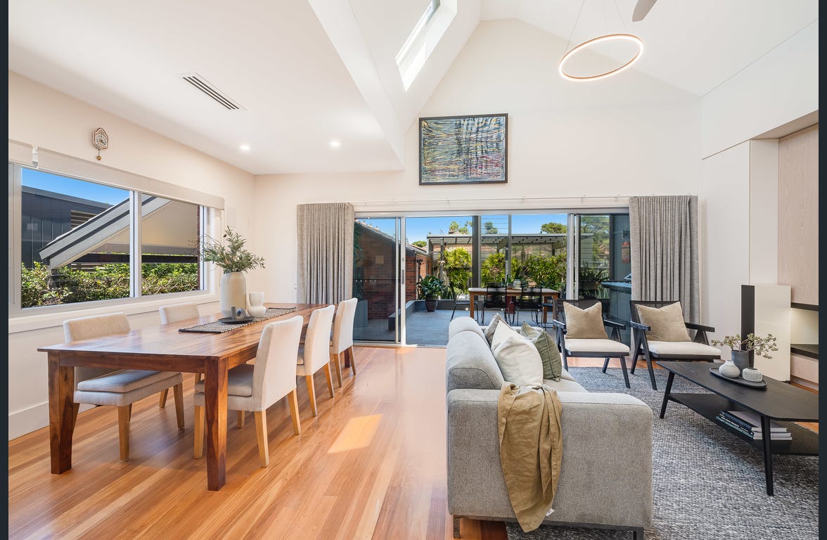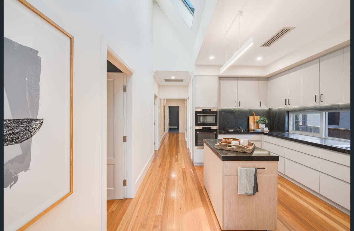 Internally, widened doorways, reconfigured bathrooms and kitchen, and smart home technology — including tablet and voice-activated doors, windows, lighting and entertainment systems — create a highly functional and adaptable living environment. Externally, heritage features such as timber windows, leadlight glazing and gable details were retained, while the rear addition uses complementary brickwork and roof forms. The interior contrasts with modern finishes, raked ceilings and square-set detailing. Energy efficiency measures include insulation, cross ventilation, low-e glazing and provision for photovoltaic cells. The result is a home that balances heritage character with modern accessibility, delivering a comfortable, sustainable and future-ready residence.