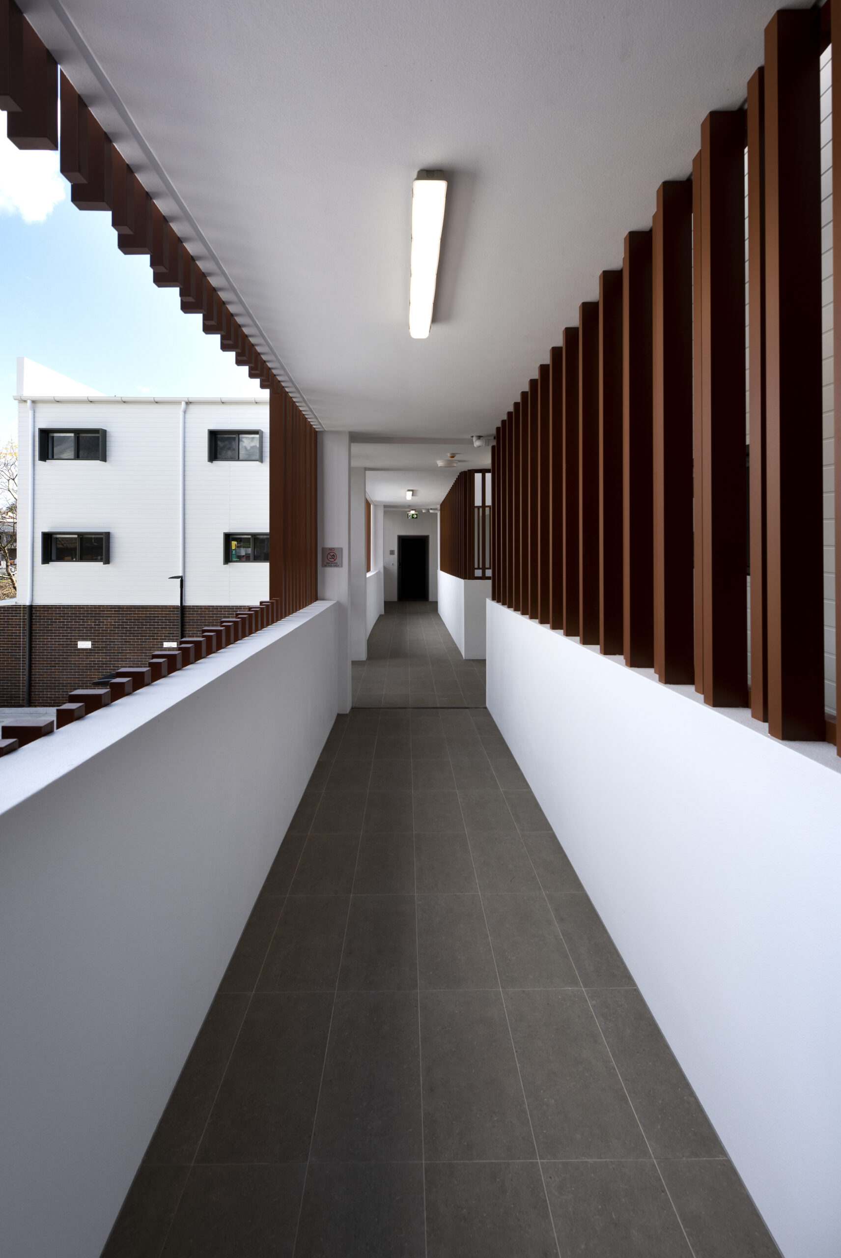 The three-storey building includes seven two-bedroom and eleven one-bedroom units, creating secure homes for more than 20 residents in need. The design prioritises livability and long-term sustainability through durable, low-maintenance materials such as face brick and lightweight cladding. Screened balconies provide privacy and passive surveillance, while landscaped areas, including new street trees, contribute to the neighbourhood character.