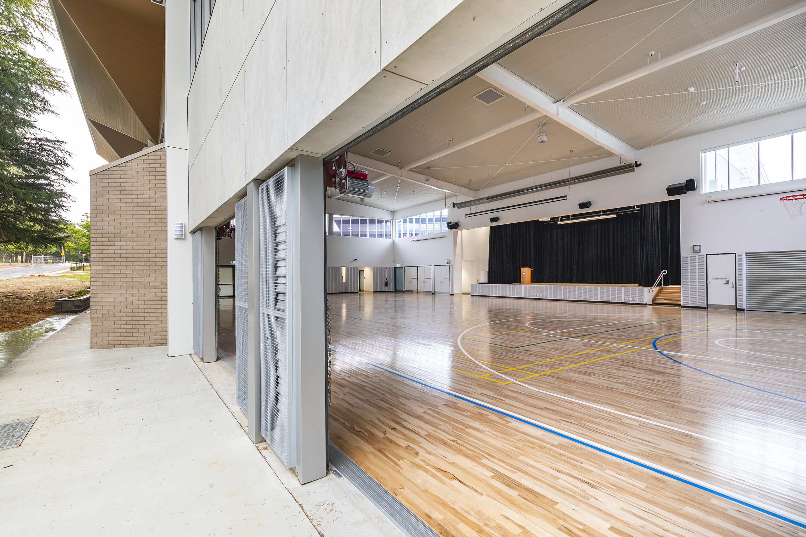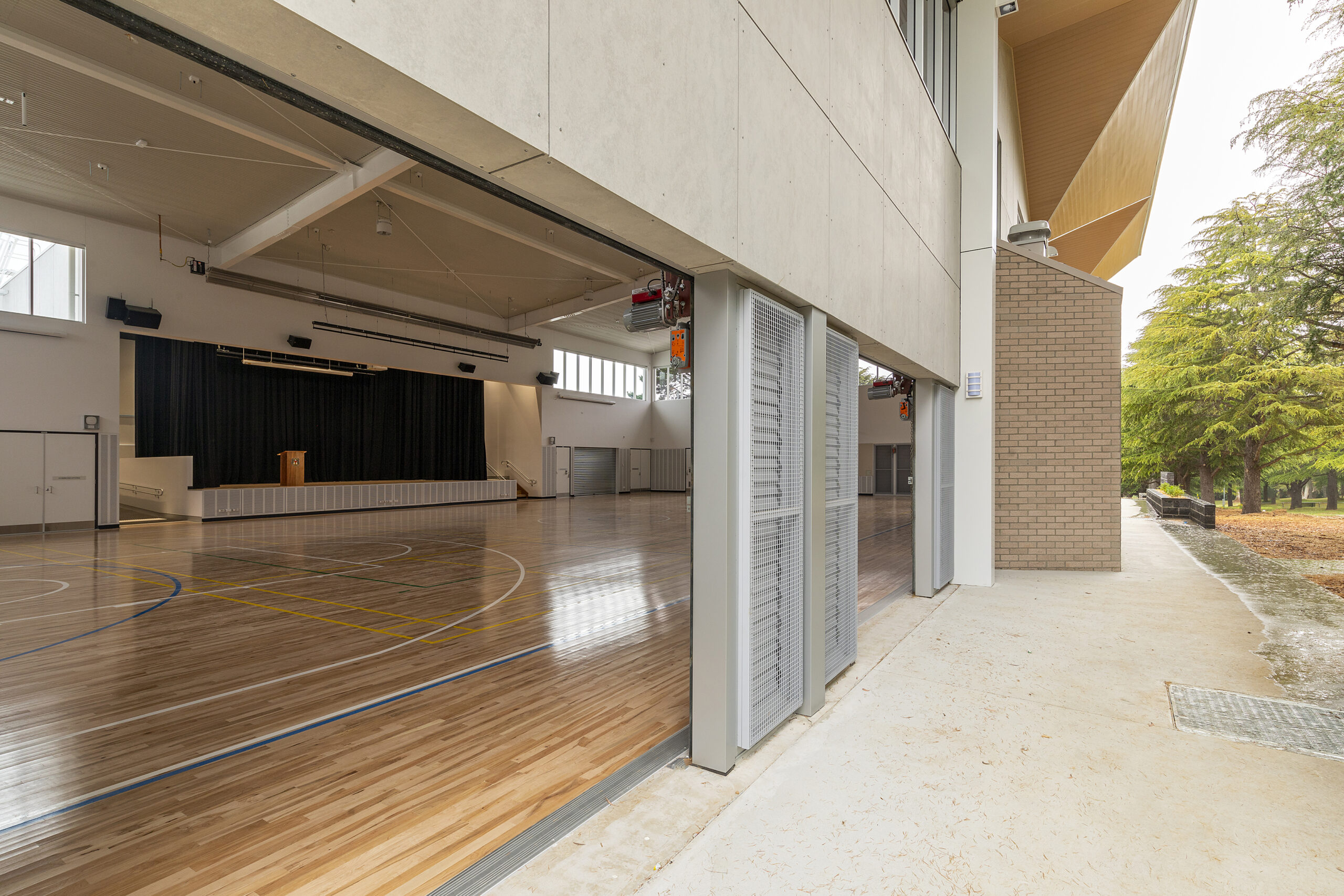 Positioned along the Victoria Park boundary, the hall enhances the school’s presentation and strengthens campus connections. Multiple entries link to open spaces, the STEM building, and the main school entry. While the school has no perimeter fencing, the new hall creates a welcoming secondary entry point. This informal ‘piazza’ offers students, staff and families a gathering space that complements the established architecture and contributes to a cohesive campus identity.